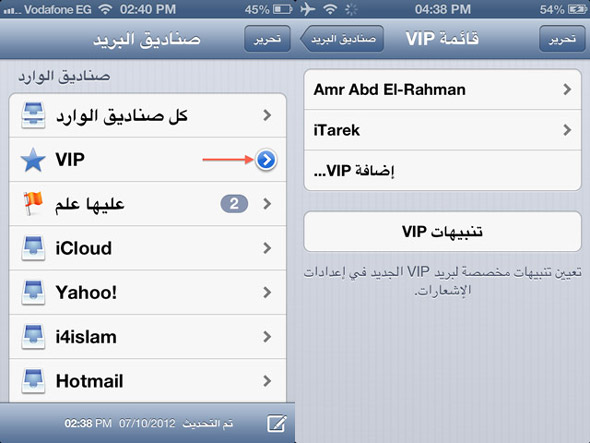 من المزايا الجديدة أيضاً هى إمكانية تخصيص صوت رسائل خاص بقائمة ال VIP لتتمكن من تميزهم عن باقى البريد الوارد إليك ويمكن ذلك عن طريق: