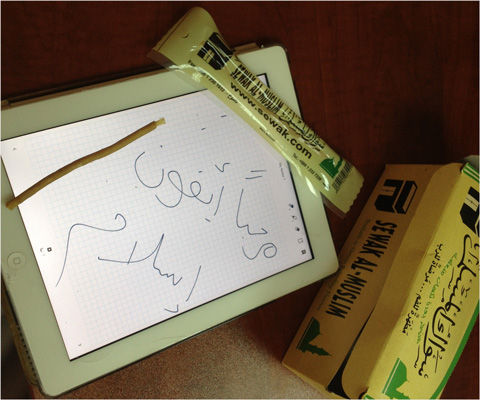 يؤخذ السواك من جذور أشجار صحراوية تنتشر في مناطق متعددة في جزيرة العرب وأفريقيا، أهم ما يميز السواك هو توافره بكثرة وبسعر زهيد ويعتبر فرشاة أسنان طبيعية وهو عملي جداً للإستخدام في أي وقت، لكن هل تعلم أنه يمكنك شراء سواك وتخصيصه للآي باد، حيث يمكنك استعماله كقلم للكتابة على جهازك واطمئن لن يسبب أي خدوش على شاشة جهازك، مهلاً.. فهذه ليست مزحه، وكما يظهر في الصورة بأعلى تجربة الكتابة على شاشة الآي باد والتي أرسلها لنا الصديق سيف تـويلي النـعيمـي.