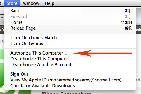 ويمكن ذلك عن طريق عن طريق الضغط على Store واختيار Authorize This Computer: