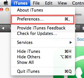 في الآي تونز 11 قم بالضغط على القائمة بأعلى الركن الأيسر ثم اختيار “preferences” ، وستجدها في قائمة Edit في النسخ السابقة وفي قائمة iTunes في أجهزة الماك: