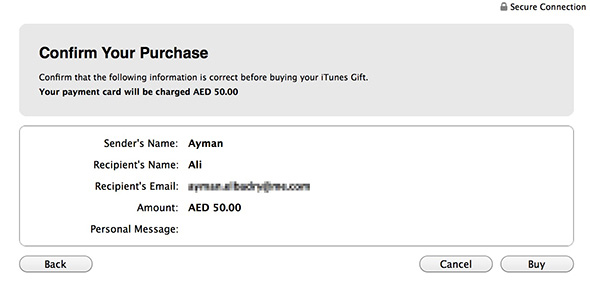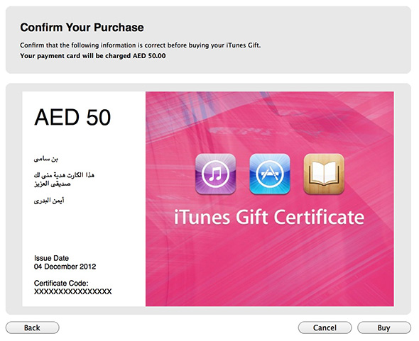 بعد اتمام عملية الشراء سوف يصل إلى صديقك إيميل من أبل يضم كود به القيمة التي أرسلتها لك.