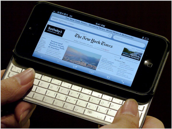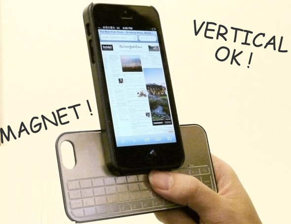 لا أحد يحب أن يحمل معه ملحق دائماً، وإذا قمت بشراء لوحة مفاتيح خارجية ستستخدمها لبعض الوقت ثم تبدأ في إهمالها تدريجياً فمن غير المألوف أن تقوم بتركيب ملحق كلما وددت أن تكتب شيئاً من خلال الآي فون، لهذا جاء تصميم هذا الملحق كي يبقي دوما في الهاتف دون إفساد أو تغيير لشكله المحبب، الملحق مصمم للعمل مع الآي فون 5 ويتصل بالجهاز عن طريق البلوتوث. وهو يتكون من غطاء تقليدي رقيق ذو خلفية مغناطيسية، وشريحتين إضافيتين رقيقتين أحدهما لوحة مفاتيح والثانين لوحة ألعاب، يلتصقان بالغطاء المغناطيسي ويتصلان بالآي فون عن طريق البلوتوث، وعندما تحتاج أي منهما قم بتحريكه إلى الأمام كما يظهر في الصورة السابقة.