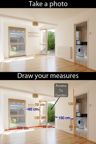 دائماً ما نحتاج لرفع قياسات غرف أو فتحات، أبواب أو نوافذ في منازلنا، فإن أردنا شراء قطعة أثاث مثلاً كيف لنا أن نتأكد أنها ستملأ الفراغ المخصص لها؟ أي لن تعوق الحركة أو تبدو صغيرة؟ كل ذلك يحتاج دوماً إلي قياسات دقيقة للنوافذ والأبواب والمساحات المتروكة للمرور وبالطبع يمكننا الاعتماد على مكتب تصميم وتجهيز لكن الكثيرون يصادفون أشياء يتمنوا لو يقتنوها، هذا التطبيق يُسهل العملية كثيراً فيمكنك التقاط الصورة ثم تسجيل القياسات عليها بحيث تحفظها بعد ذلك، ولا يمكن أن تختلط المساحات أو القطع فكل قطعة يدون عليها أبعادها وكذلك المساحة الفارغة فيمكنك إعادة ترتيب المقتنيات الترتيب الأمثل، هذا التطبيق غير قاصر على المنازل والاثاث فيمكنك توقيع أي قياسات على أي صور تلتقطها.