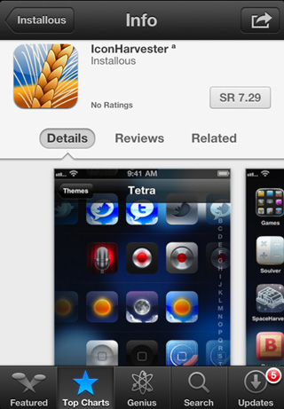 تطبيق آخر مثل IconHarvester والذي يقدم ميزة يتمناها مستخدمي نظام iOS وهي تغيير أيقونات التطبيقات، وخُدع البعض وحدث معهم مثل SBSettings ووجدوه تطبيقاً عادياً جداً لا يغير الأيقونات.