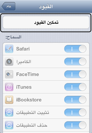 اذهب إلى الإعدادات ثم عام ثم القيود وفعلها.