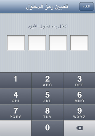 سيطلب منك الجهاز كلمة مرور فاكتب 4 أرقام سرية ( لابد أن تتذكرها لإجراء أي تعديل مستقبلاً).