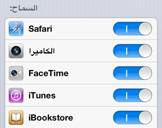 إخفاء تطبيقات مثل سفاري والكاميرا والفيس تايم والآي تيونز وأي تطبيق في النظام ترى أنه غير مناسب لأطفالك