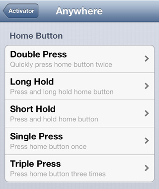 أحد أفضل البرامج في السيديا ويتم تحميله تلقائياً عن تنزيل SBSettings، التطبيق يمكنك من تخصيص جهازك كما تريد فمثلاً تريد إذا قمت بهز الجهاز يجعله صامت، وإذا ضغط على زر الهوم مرتين في غلق الشاشة فيفتح لك تطبيق الرسائل، وإذا قمت بالنقر بثلاثة أصابع على الشاشة يفتح لك تطبيق الصوتيات، وإذا ضممت 5 أصابع يغلق لك التطبيقات مثل الآي باد وهكذا. التطبيق مجاني ويوجد في السيديا مباشرة.
