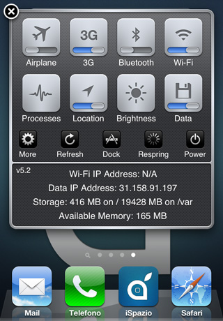 أشهر تطبيقات سيديا على الإطلاق والمطلب الأول لمستخدمي iOS، التطبيق يمكنك من فتح وغلق الثري جي والبلوتوث والواي فاي والإنترنت وإخفاء التطبيقات وعشرات المزايا بخطوة واحدة فقط، وقد أفردنا له مقال سابق نتحدث فيه عن هذا التطبيق الأكثر من رائع ونتمنى أن تقدمه أبل في iOS 7. ويمكن العودة إلى مقالنا السابق الخاص بهذا التطبيق عبر هذا الرابط. التطبيق مجاني ويوجد في السيديا مباشرة