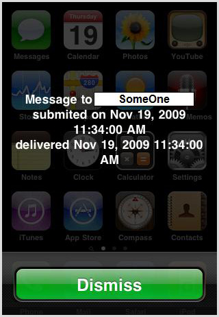 من عيوب الآي فون أنه لا يمكن المستخدم من معرفة أن رسالة تم تسليمها ” تقرير توصيل الرسائل” ويكتفي بهذه الخاصية فقط في الآي ماسج، هذه الأداة تظهر لك إذا كان الطرف الآخر استلم رسالتك. التطبيق مجاني لكنه يوجد في سورس آخر وهو http://cydia.iphonedelivery.fr ، الأداة لا تدعم الآي فون 5 والآي فون 4S.
