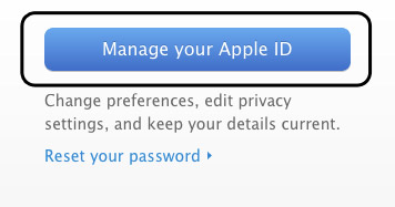 2قم بالضغط على Mange Your Apple ID ثم سجل دخول في حسابك.