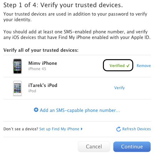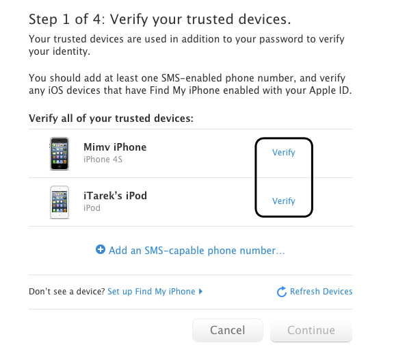 10سنقوم هنا بتفعيل الآي فون ليكون هو الجهاز الموثق وذلك بالضغط على “Verify” أمامه كما في الصورة السابقة.