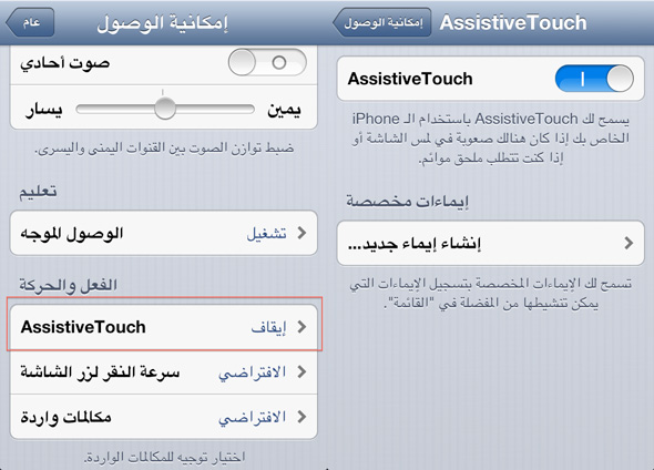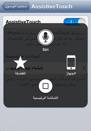 من المزايا التي صدرت مع نظام iOS 5 هى ميزة مساعدة اللمس والتي تمكن المستخدم الذي يجد صعوبة في لمس الشاشة أو حدوث كسر لأزرار الصوت الخاص بالجهاز وغيرها من المشاكل التي تساعدك ميزة مساعدة اللمس على القيام بها كما أشرنا تفصيلياً في مقال سابق تجده عبر هذا الرابط، وأضافت أبل عدة تحسينات على هذه الخدمة في iOS 6 مثل إمكانية التقاط لقطة للشاشة “سكرين شوت” أو الوصول لتعدد المهام وأيضاً تشغيل سيري.