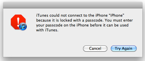 1قم بتوصيل جهازك بالحاسب الذي تستخدمه دوماً للمزامنة معه ونقل المشتريات وأخذ النسخة الاحتياطية، ثم قم بفتح الآي تيونز وستجد الآي تيونز يتعرف على جهازك ولا تظهر الرسالة التي تخبرك أن عليك فتح الجهاز أولاً.