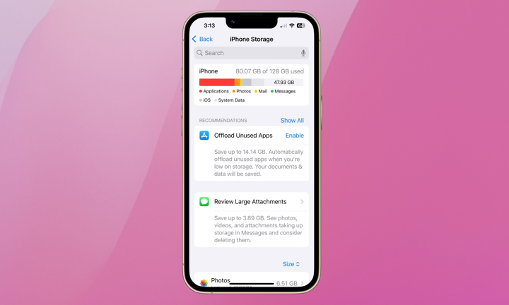 توفر أجهزة الآي-فون أداء قوي وسلاسة في التعامل مع المهام اليومية المختلفة. لكن بمرور الوقت، ستجد أن الجهاز أصبح يعمل بشكل أبطء من المعتاد. أحد الأسباب الشائعة لذلك يرجع إلى عدم وجود مساحة تخزين كافية. ولهذا يوصى بترك مساحة تخزين فارغة لا تقل عن 10% من مساحة الإجمالية حتى لا يتأثر أداء الهاتف الذكي. بالطبع قد يكون توفير مساحة تخزين إضافية أمرًا صعبًا مع سعة 128 جيجابايت. لذا يُنصح بشراء طراز بسعة 256 جيجابايت على الأقل.