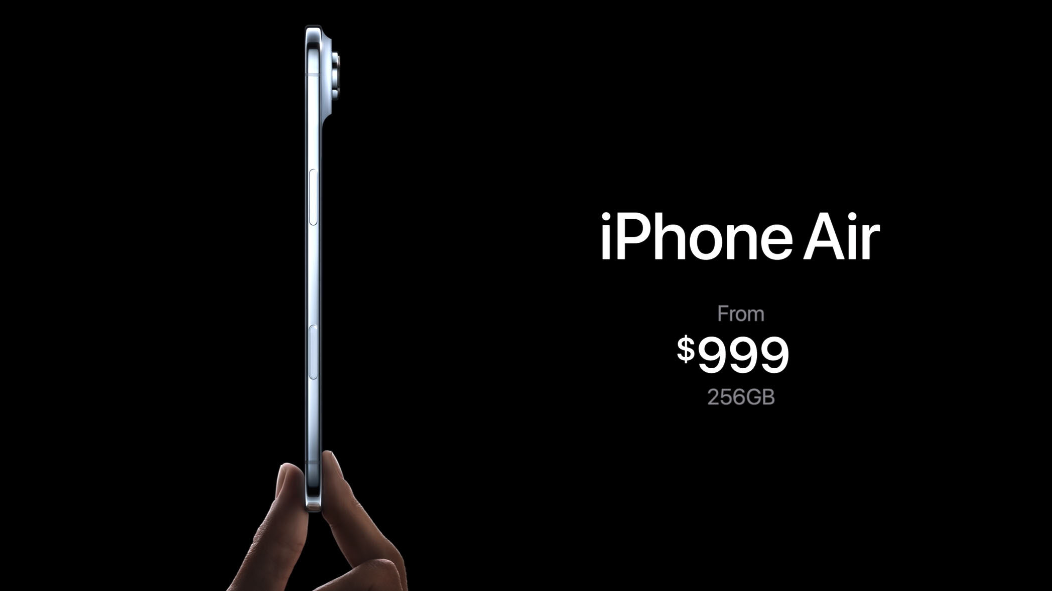 ثم كشفت أبل عن تصميم جديد كليًا أطلقت عليه اسم آي-فون Air، واصفةً إياه بأنه “نحيف لدرجة يصعب تصديقها حتى تراه بين يديك”. الآي-فون بسُمك لا يتجاوز 5.6 ملم. ويأتي بشاشة مقاس 6.5 بوصة تدعم ProMotion ومعدل تحديث متكيف، مع وضع Always-On وسطوع أقصى يبلغ 3000 شمعة.